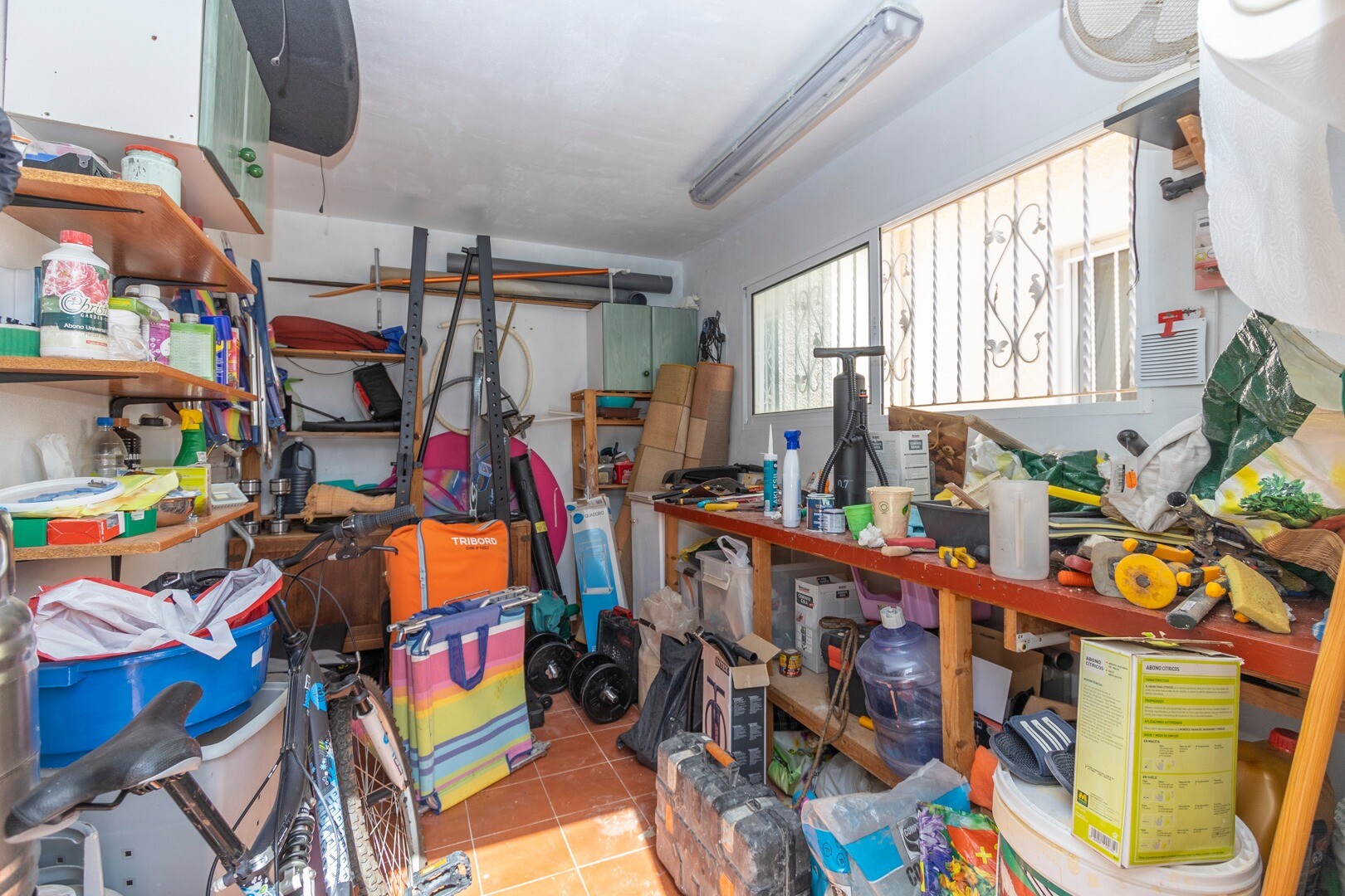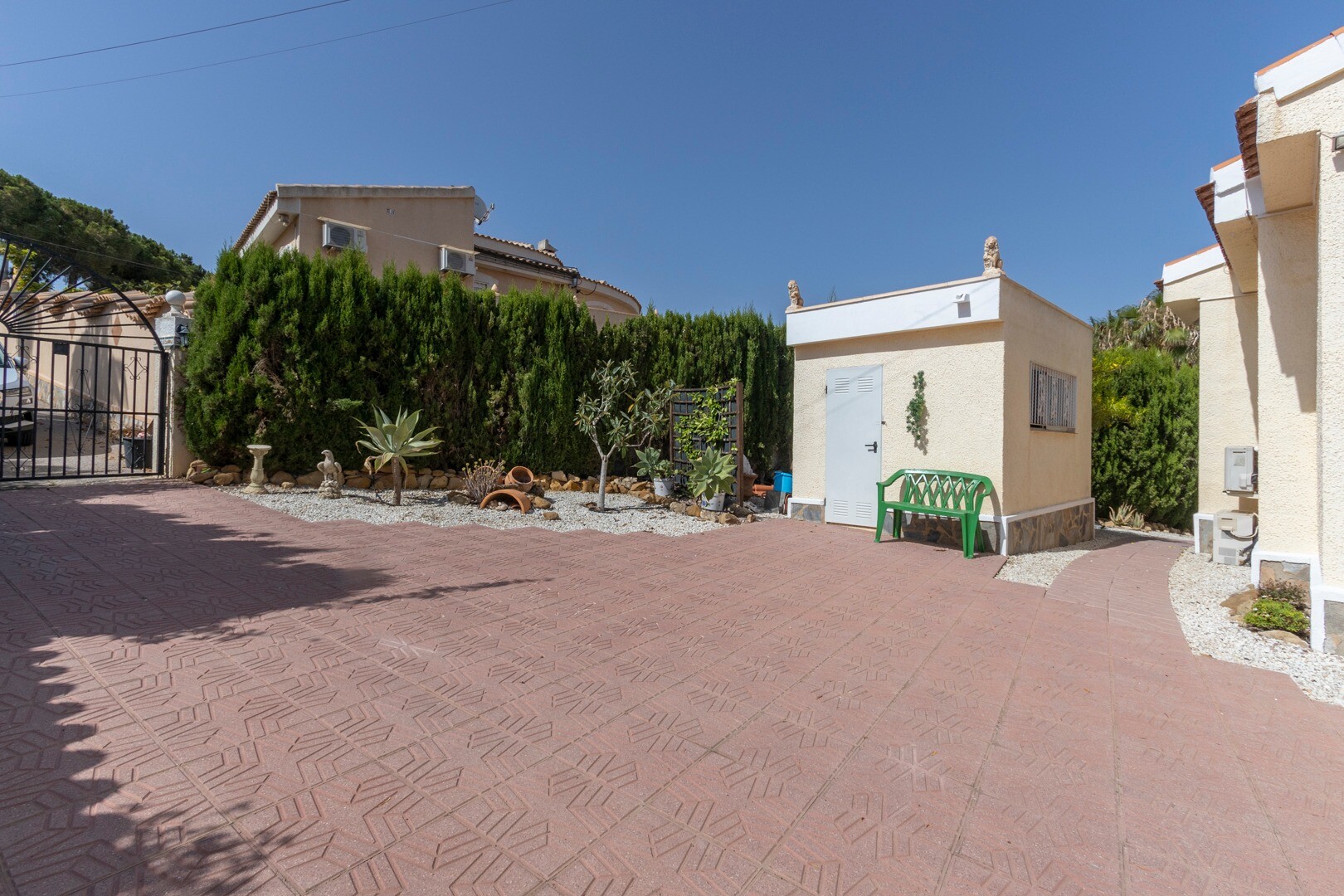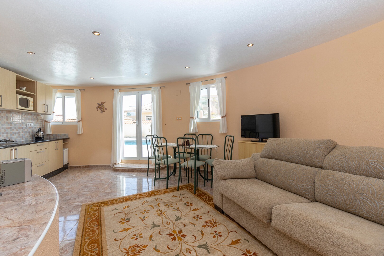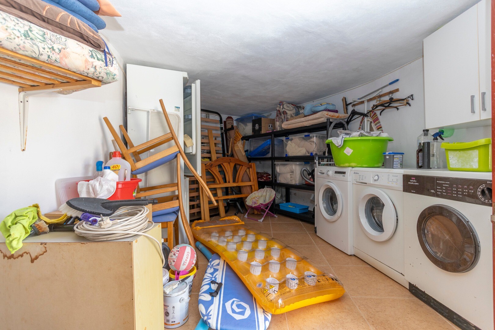 På en tomt på nästan 600m² finns ett vackert hus i söderläge, med en stor delvis inglasad altan. Huvudbyggnaden består av ett vardagsrum/matsal med öppen spis, ett fullt utrustat kök, 3 dubbelrum, ett av dem med eget badrum och ett annat badrum för hela familjen. I halvkällaren finns en studio med egen ingång, med eget kök och stort badrum. Huset h...ar flera stora förråd, sommarkök, stor solig pool och gott om uteutrymmen att njuta av året runt.