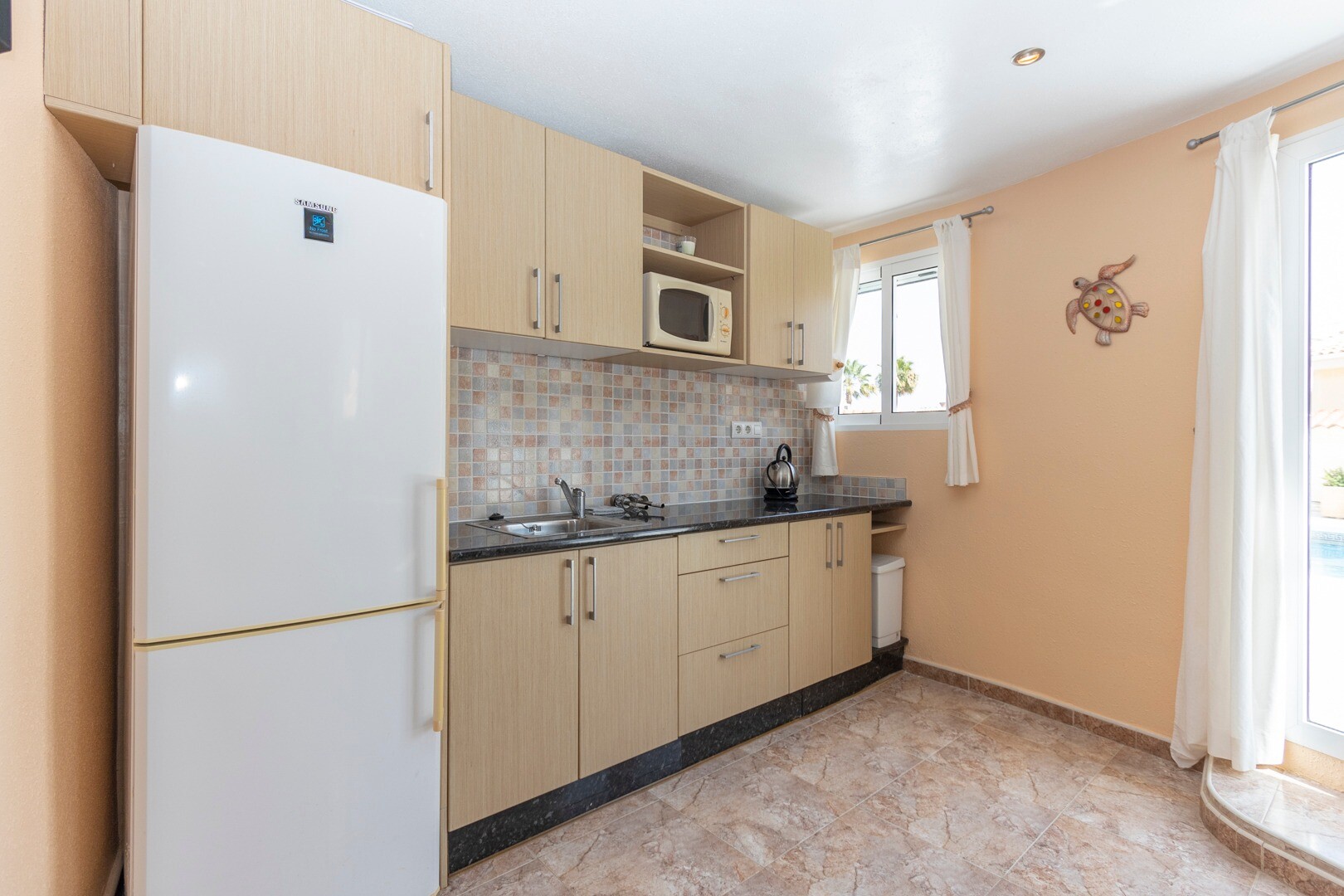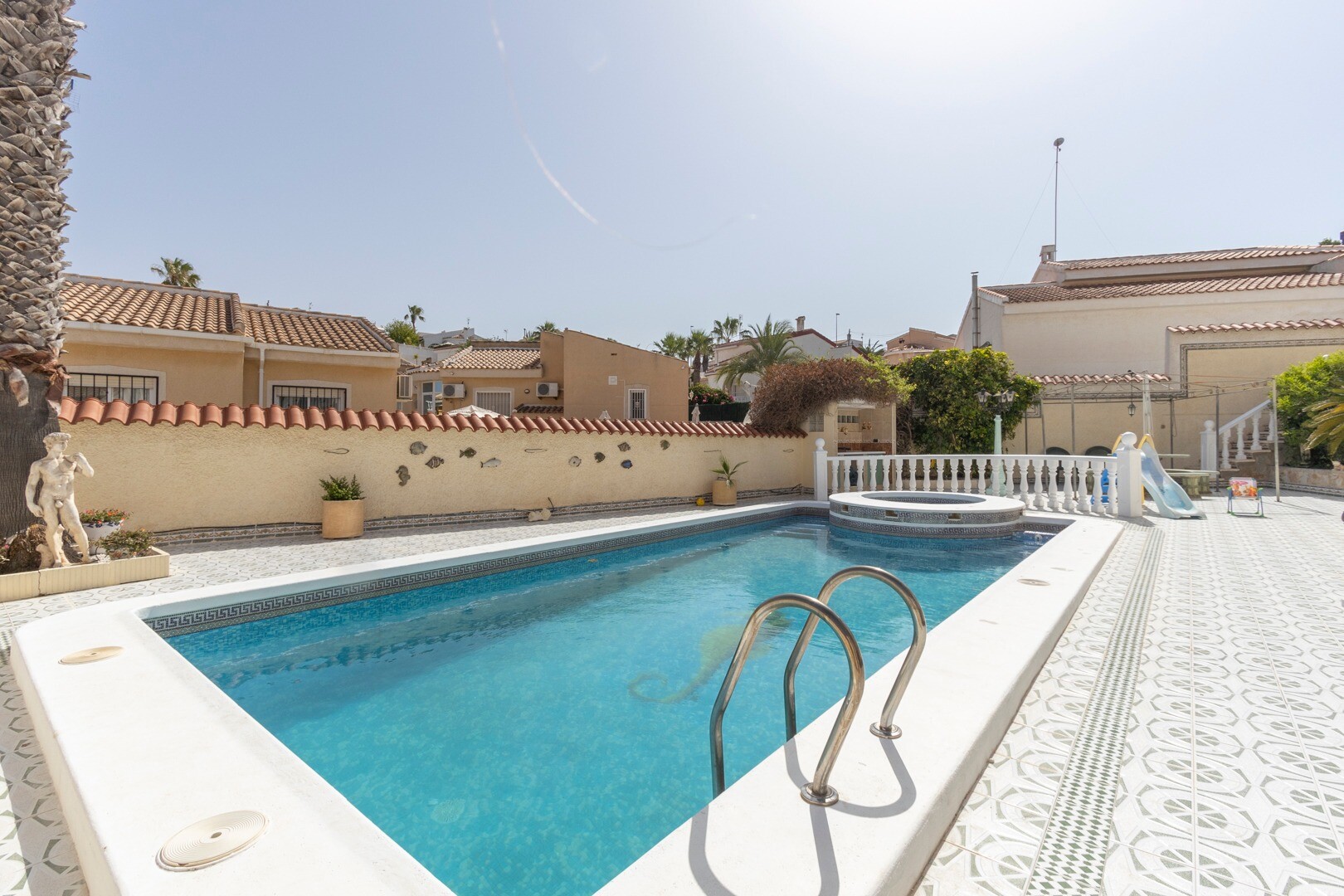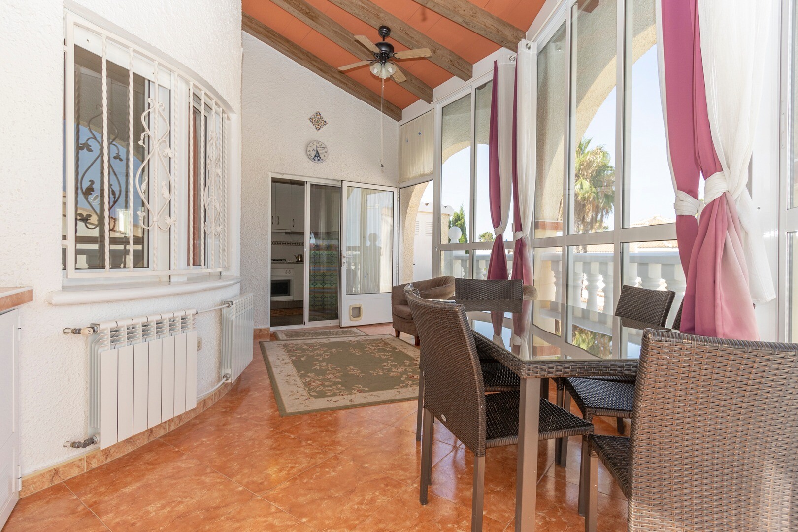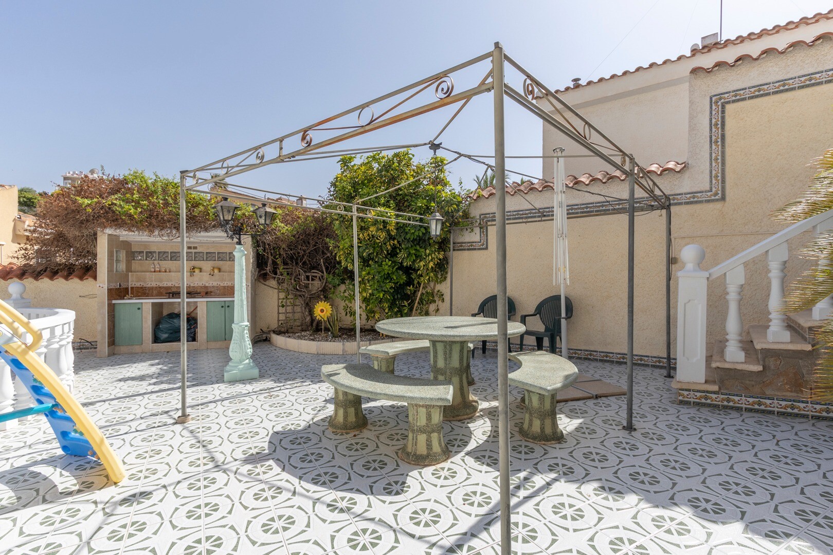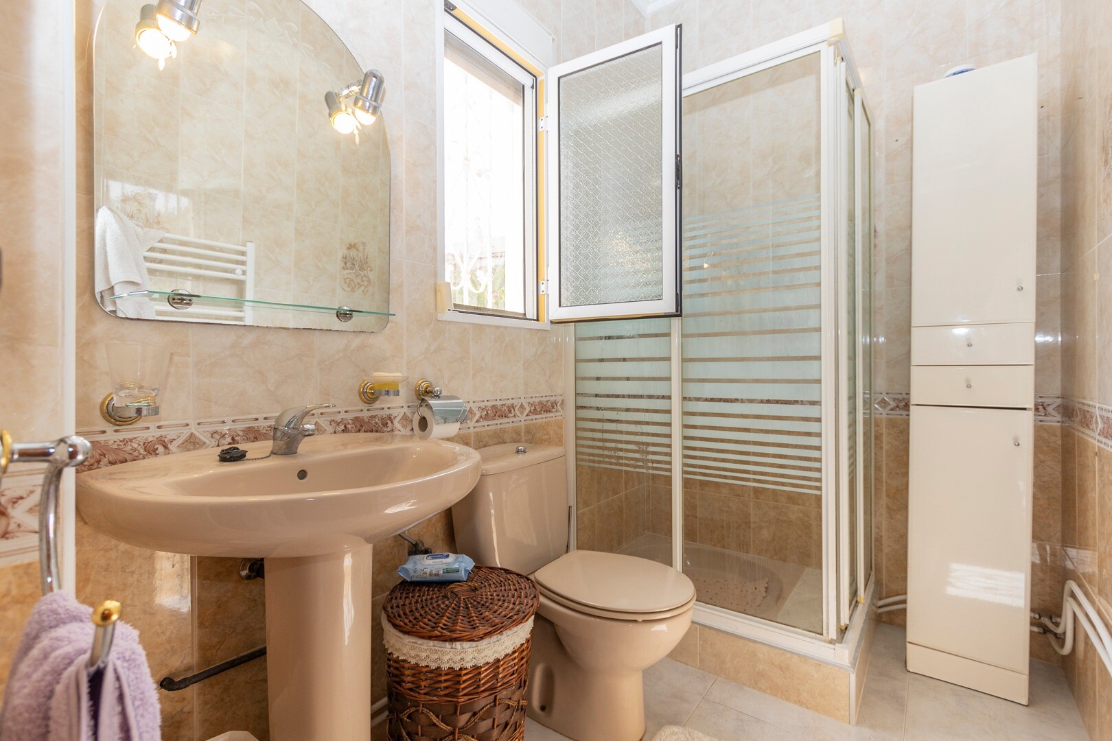 På en tomt på nästan 600m² finns ett vackert hus i söderläge, med en stor delvis inglasad altan. Huvudbyggnaden består av ett vardagsrum/matsal med öppen spis, ett fullt utrustat kök, 3 dubbelrum, ett av dem med eget badrum och ett annat badrum för hela familjen. I halvkällaren finns en studio med egen ingång, med eget kök och stort badrum. Huset h...ar flera stora förråd, sommarkök, stor solig pool och gott om uteutrymmen att njuta av året runt.