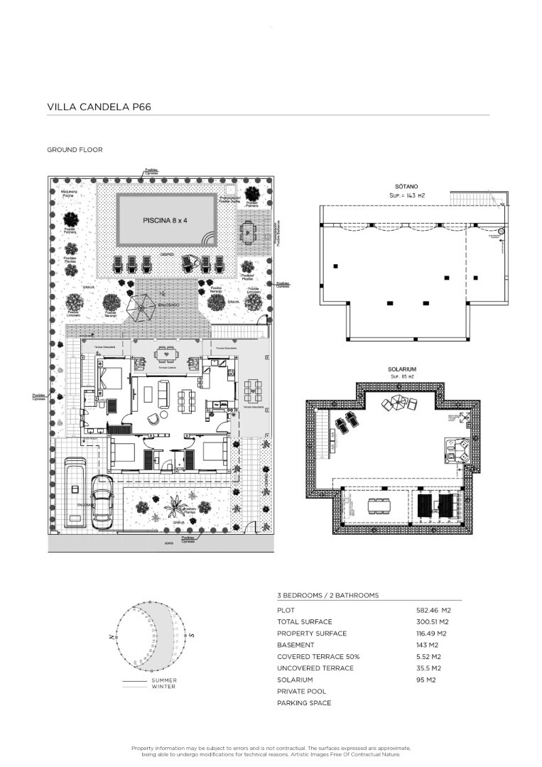 På utsidan hittar du en privat trädgård med pool (8x4m), där du kan koppla av och njuta av medelhavsklimatet. Dessutom har villan en stor källare som kan vara ett multifunktionellt utrymme som kan möbleras för olika ändamål, såsom gillestuga, gym och/eller förråd.