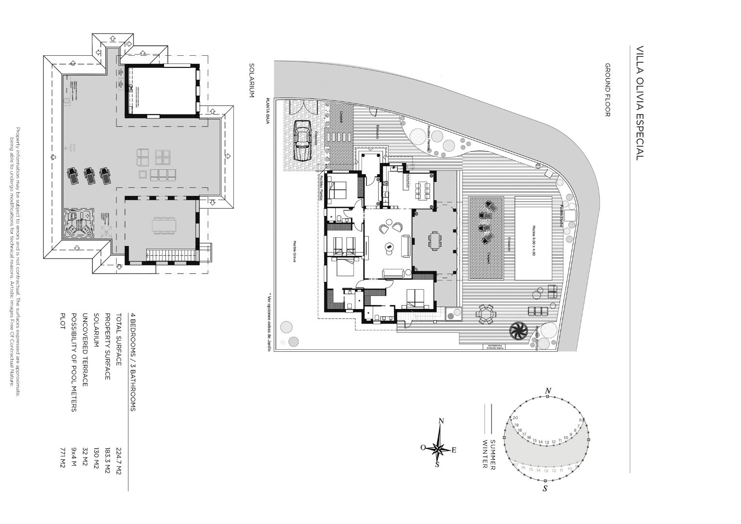 Pool 9x4m och solarium på 130m2