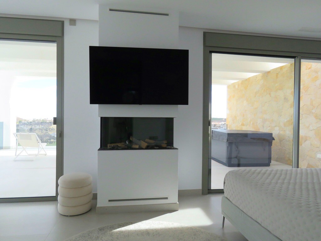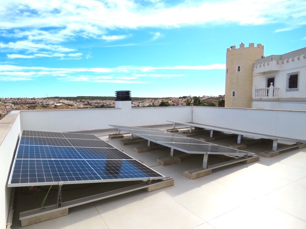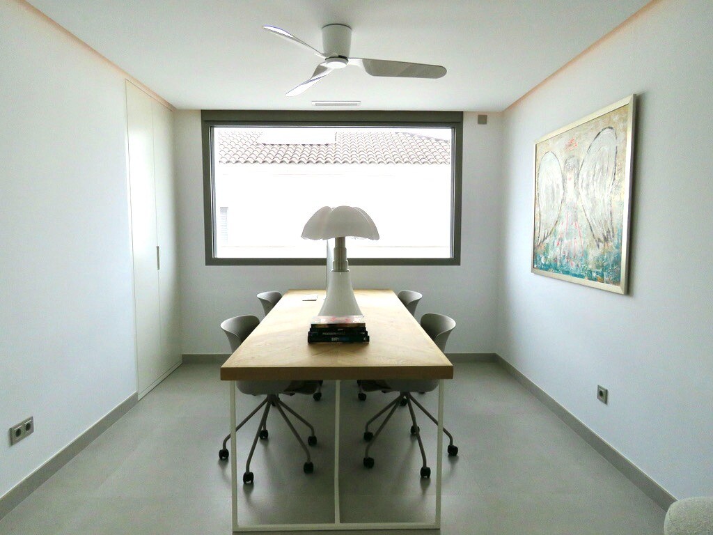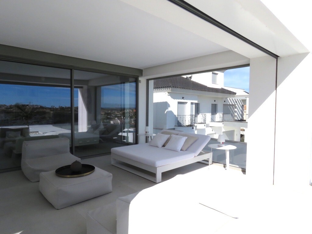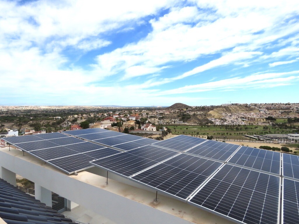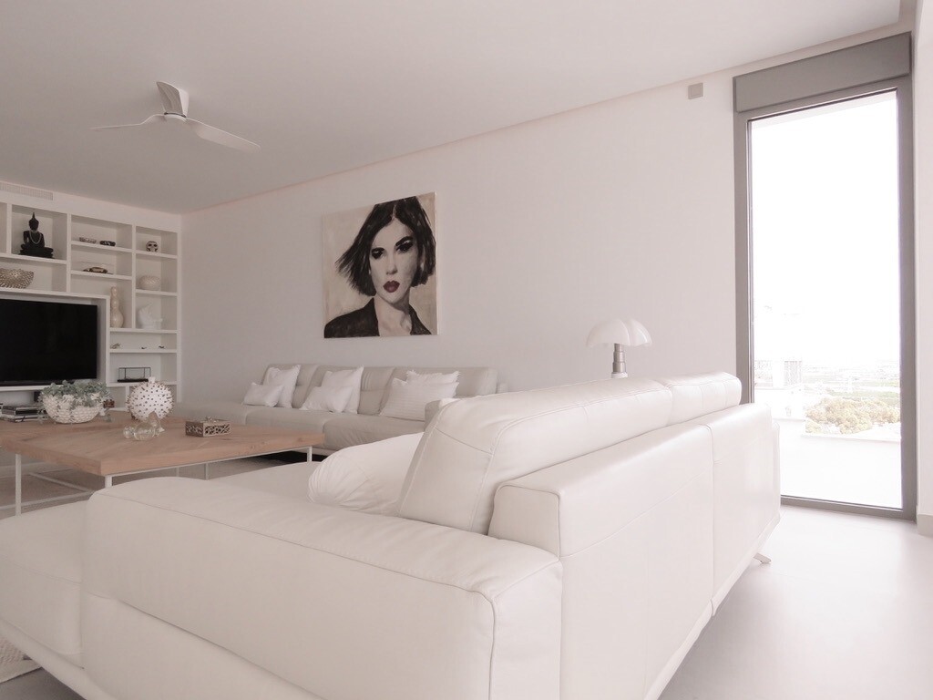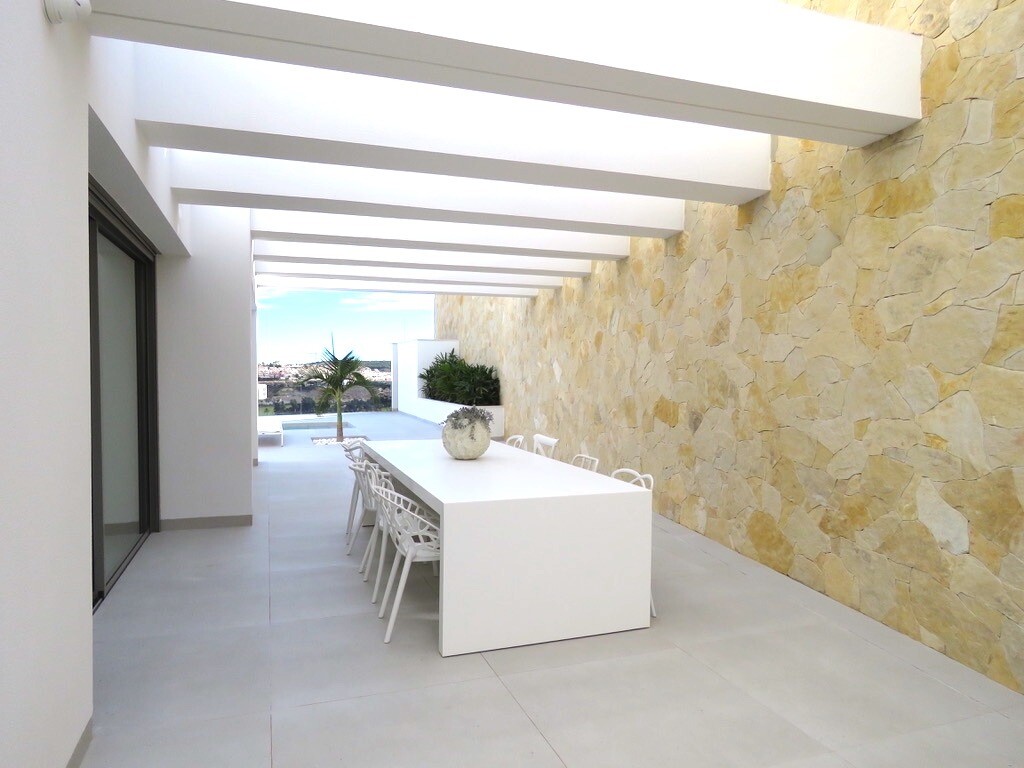 Solarium på 66m2. Denna designvilla är utrustad med den senaste tekniken och alla material är noggrant utvalda. På bottenvåningen finns vardagsrum och matsal med kök, grovkök och även den täckta terrassen. På första våningen har vi 3 sovrum och 3 badrum. På garageplan finns förstås garaget med plats för 8 bilar, ett nöjesrum och det 4:e sovrummet o...ch badrummet. Alla våningar i huset har golvvärme och huset är också helt luftkonditionerat. Hissen tar dig från garaget till husets översta våning. Denna vackra villa är även utrustad med solpaneler. Denna villa har en pool 12x2m, en utomhusdusch med toalett och handfat. Det kommersiella centrumet med La Marquesa Golfs klubbhus ligger bara 900 meter från denna villa. Alicantes flygplats kan nås på 30 minuter.