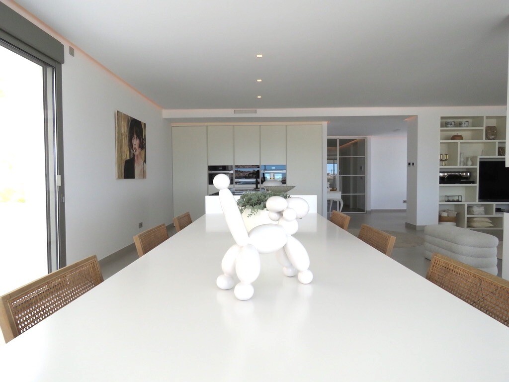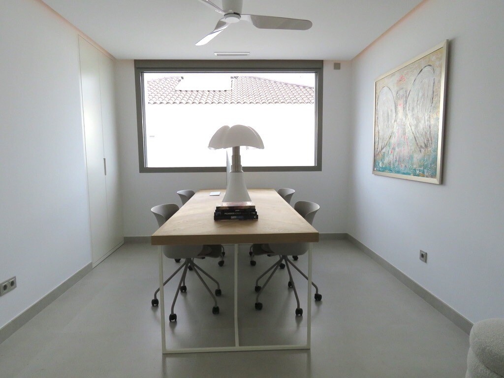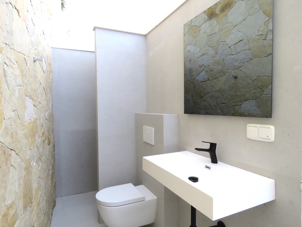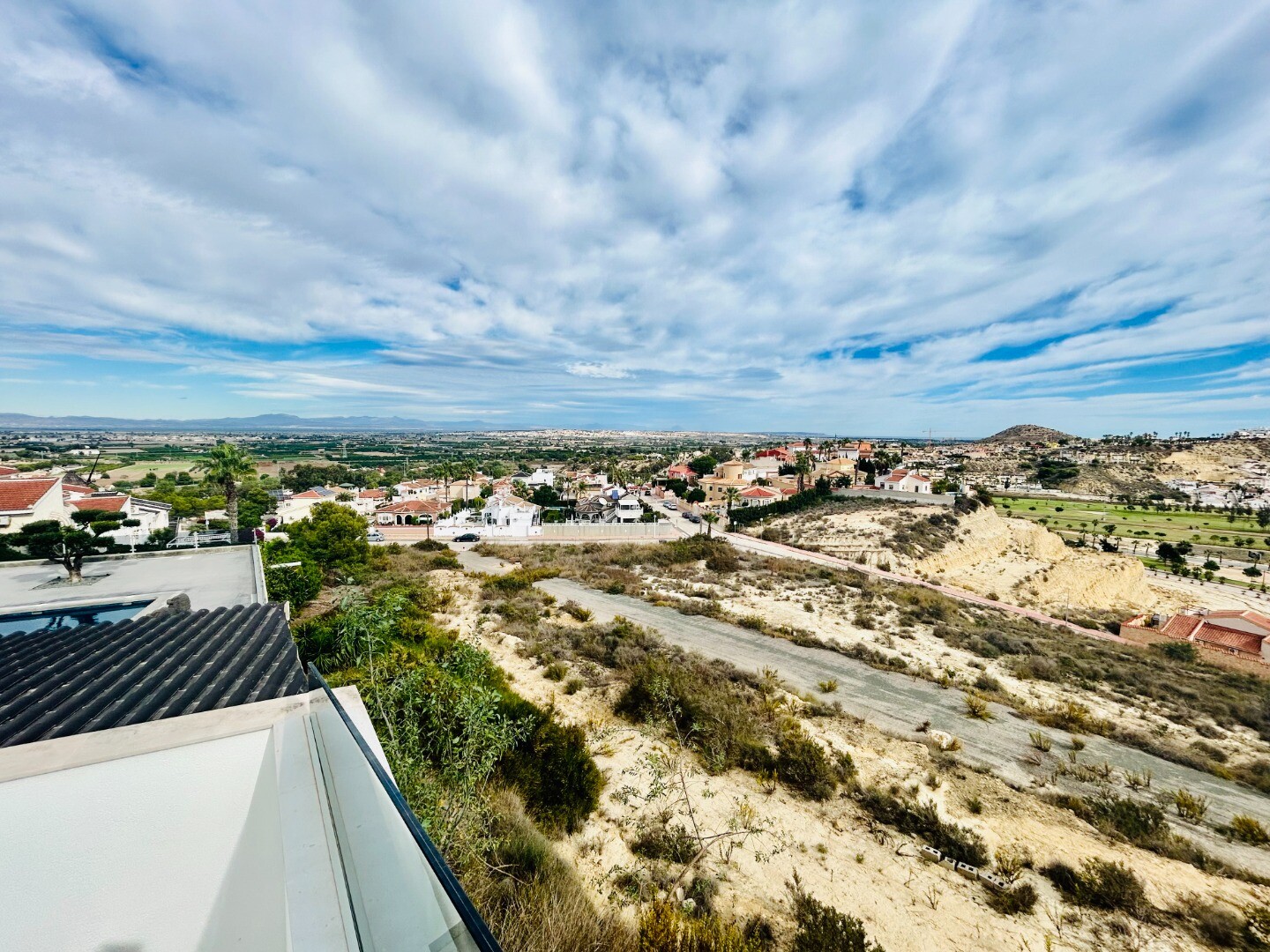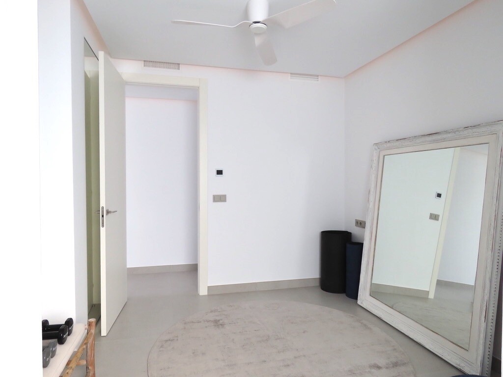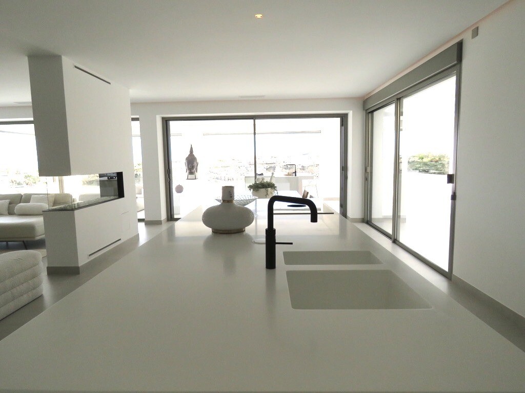 Solarium på 66m2. Denna designvilla är utrustad med den senaste tekniken och alla material är noggrant utvalda. På bottenvåningen finns vardagsrum och matsal med kök, grovkök och även den täckta terrassen. På första våningen har vi 3 sovrum och 3 badrum. På garageplan finns förstås garaget med plats för 8 bilar, ett nöjesrum och det 4:e sovrummet o...ch badrummet. Alla våningar i huset har golvvärme och huset är också helt luftkonditionerat. Hissen tar dig från garaget till husets översta våning. Denna vackra villa är även utrustad med solpaneler. Denna villa har en pool 12x2m, en utomhusdusch med toalett och handfat. Det kommersiella centrumet med La Marquesa Golfs klubbhus ligger bara 900 meter från denna villa. Alicantes flygplats kan nås på 30 minuter.