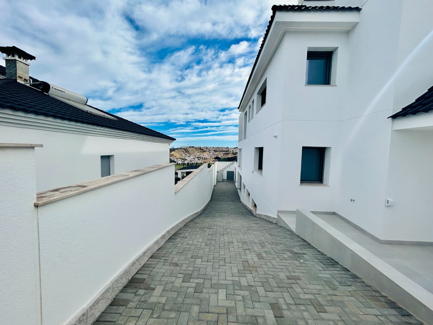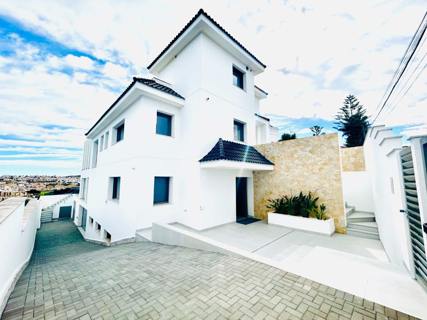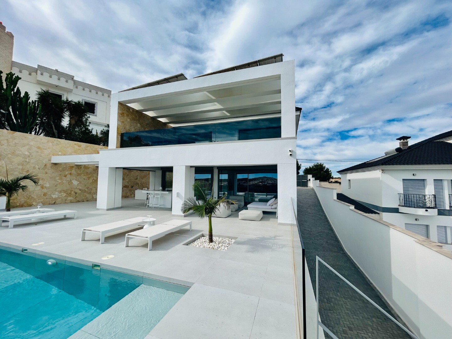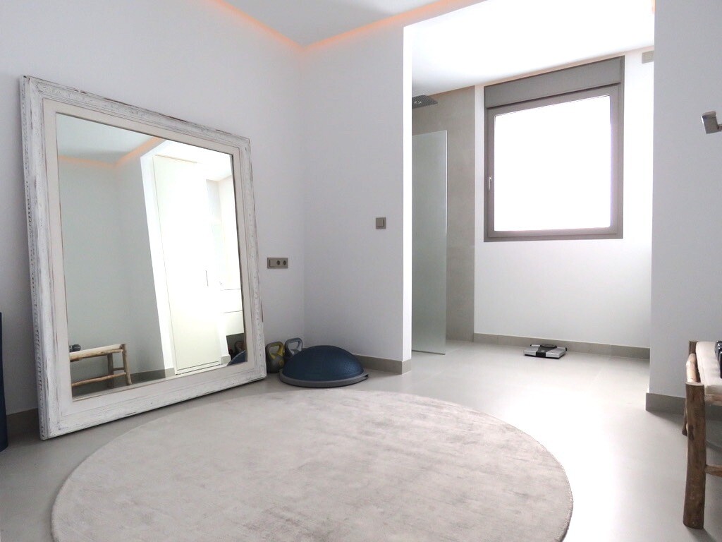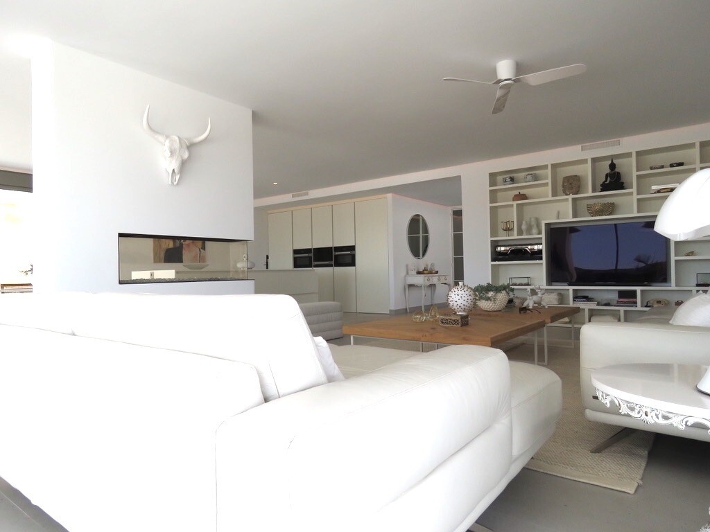 Solarium på 66m2. Denna designvilla är utrustad med den senaste tekniken och alla material är noggrant utvalda. På bottenvåningen finns vardagsrum och matsal med kök, grovkök och även den täckta terrassen. På första våningen har vi 3 sovrum och 3 badrum. På garageplan finns förstås garaget med plats för 8 bilar, ett nöjesrum och det 4:e sovrummet o...ch badrummet. Alla våningar i huset har golvvärme och huset är också helt luftkonditionerat. Hissen tar dig från garaget till husets översta våning. Denna vackra villa är även utrustad med solpaneler. Denna villa har en pool 12x2m, en utomhusdusch med toalett och handfat. Det kommersiella centrumet med La Marquesa Golfs klubbhus ligger bara 900 meter från denna villa. Alicantes flygplats kan nås på 30 minuter.