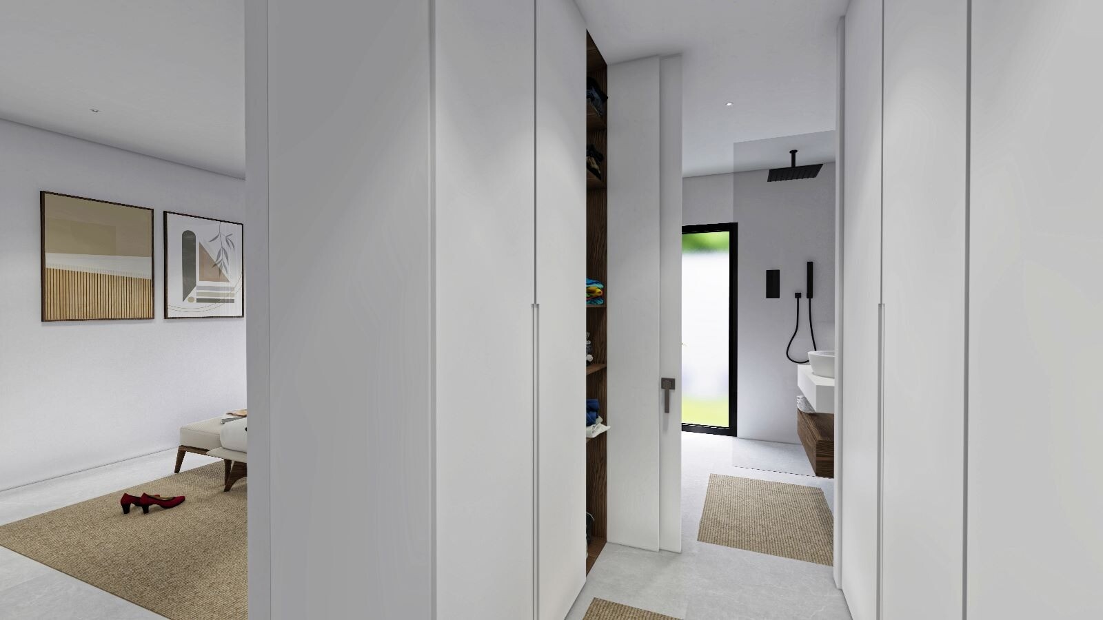Inom den moderna stilen valde vi ett hus i stort format med extra högt i tak och en källare som har naturligt ljusinsläpp och en fantastisk avkopplingsyta tack vare den engelska uteplatsen.