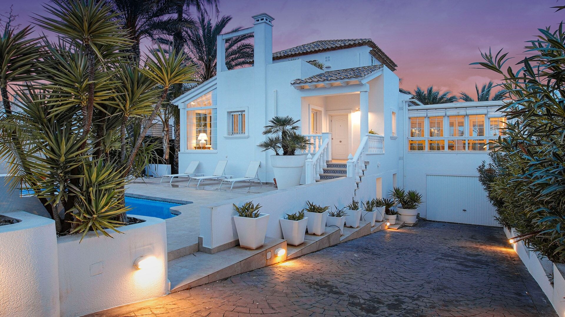 Unik modern villa i medelhavsstil på 290 m². På bottenvåningen hittar vi ett rymligt vardagsrum med ett öppet kontor, ett stort kök, en spektakulär matsal, ett sovrum med eget badrum och en gästtoalett. På övervåningen hittar vi två sovrum, ett badrum och en takterrass. I halvkällaren hittar vi ett sovrum, ett vardagsrum, en vinkällare, en tvättstu...ga, ett gym med duschrum, ett förråd och parkering för två bilar. Villan är exklusivt designad med unika material för tidlös elegans och är utrustad med centralvärme och luftkonditionering. Njut av fullständig avskildhet med en frodig tropisk trädgård, en 35 m² stor pool, en grill och utsikt över bergen och havet. Beläget i det exklusiva La Marina, nära naturen, butiker och sju blåflaggstränder. En vacker, privat tillflyktsort för året runt-boende och underhållning. Urbanisationen La Marina, belägen på Costa Blanca, erbjuder en perfekt kombination av bekvämligheter och närhet till den spanska kusten. Det är ett pulserande, internationellt samhälle där allt finns inom räckhåll: från stormarknader och vårdcentraler till livliga barer, restauranger och butiker. Även om själva urbaniseringen inte ligger direkt vid havet, ligger de vackra, vidsträckta sandstränderna El Pinet och La Marina bara en kort bilresa bort. Dessa stränder, omgivna av skyddade sanddyner och tallskogar, är perfekta för långa promenader och avkoppling vid vattnet. I närheten hittar du också naturparken Las Salinas, saltsjöarna, kända för flamingos och andra flyttfåglar. Detta gör La Marina till en idealisk bas för dem som söker naturens lugn och ro utan att offra moderna bekvämligheter och en välkomnande atmosfär.