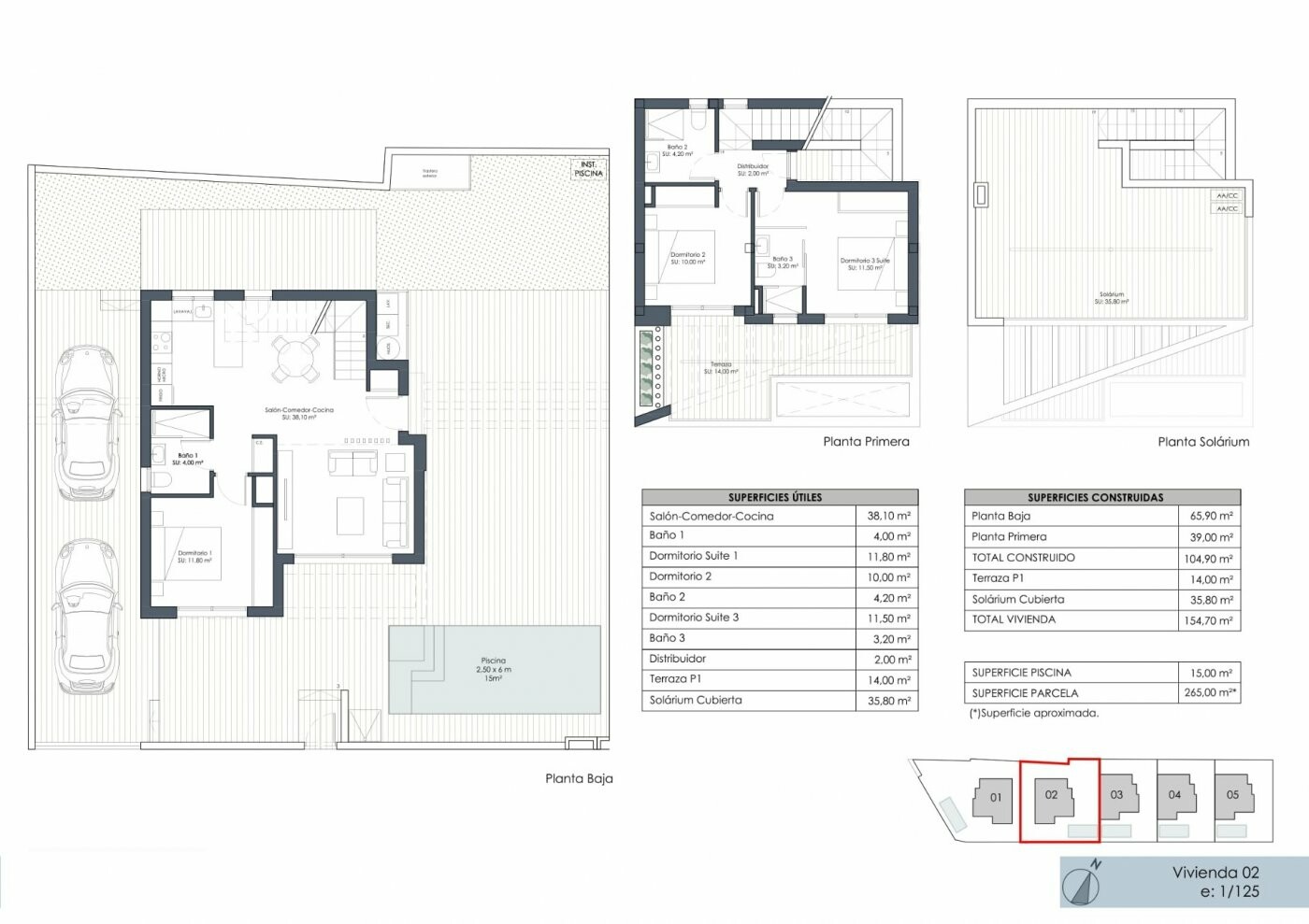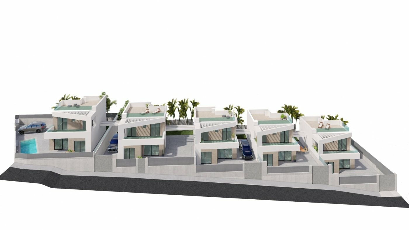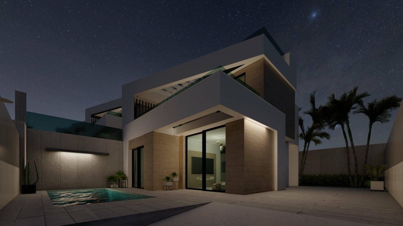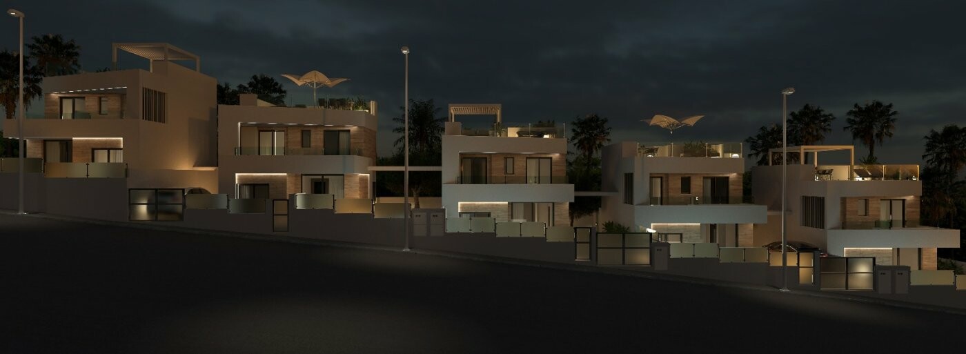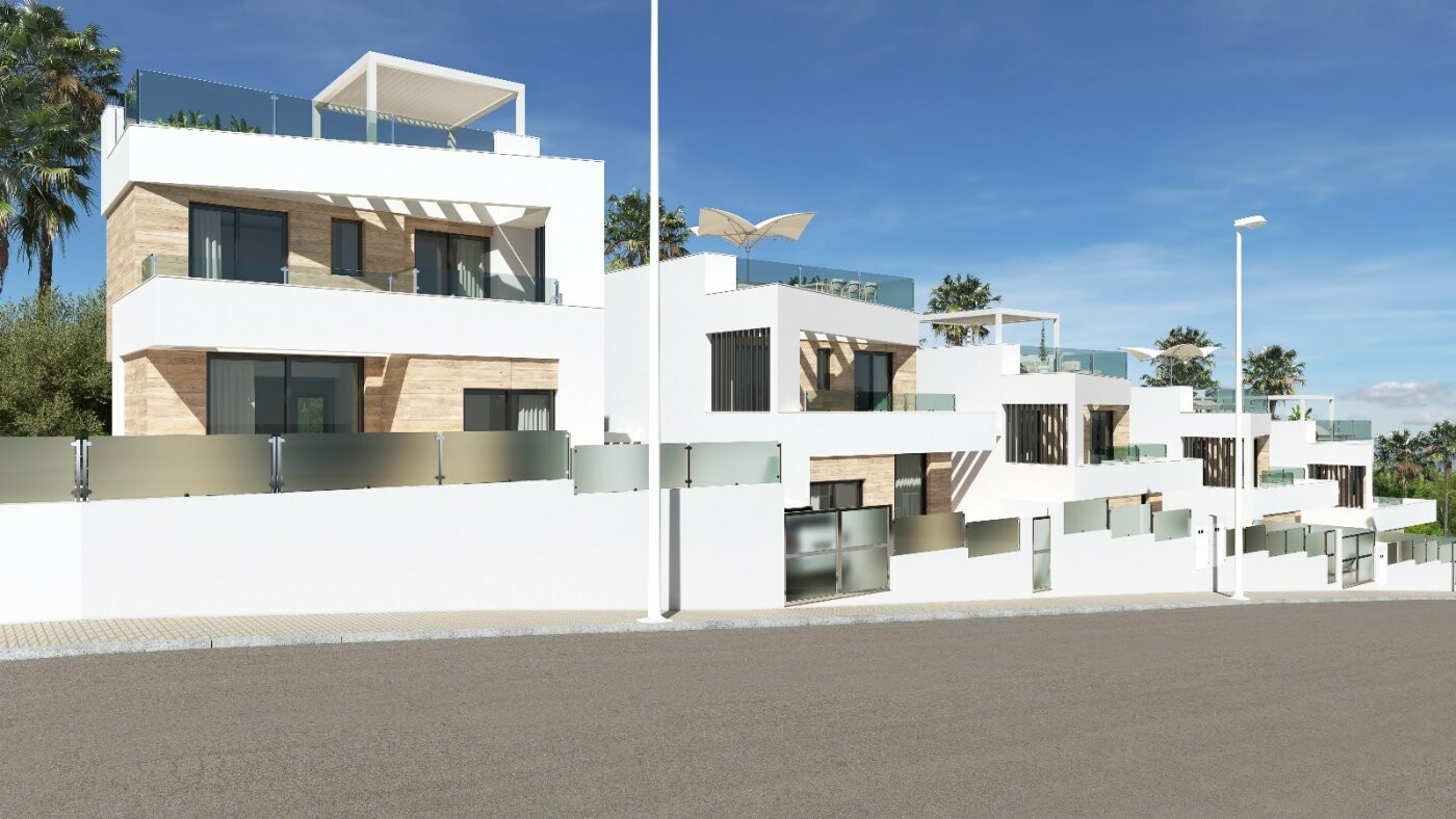 Denna helt nya villa i San Miguel de Salinas ligger i urbaniseringen Blue Lagoon, nära de prestigefyllda golfbanorna Las Colinas och Campoamor, och erbjuder en byggd yta på 104 m² på en tomt på 300 m².