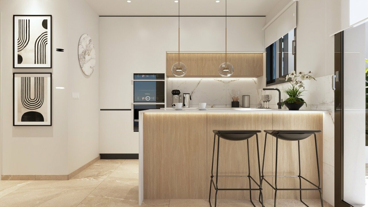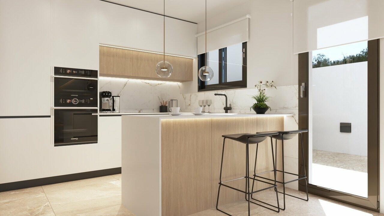 Villan har 3 sovrum, alla med inbyggda garderober, och 3 badrum med golvvärme, vilket garanterar komfort och lyx. Det öppna köket integreras perfek...t med vardagsrummet, vilket skapar ett öppet och välkomnande utrymme för dagligt boende och underhållning.