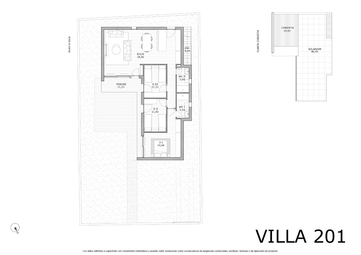Solarium på 86m2. Pool är valfritt tillgängligt för €18 900. Liten kolonilott om totalt 48 villor som kommer att byggas i olika etapper. Villorna ligger 500m från centrum med alla tänkbara bekvämligheter. Alicantes flygplats kan nås på cirka 40 minuter. Stränderna i Torrevieja och Orihuela Costa på cirka 15 minuter.