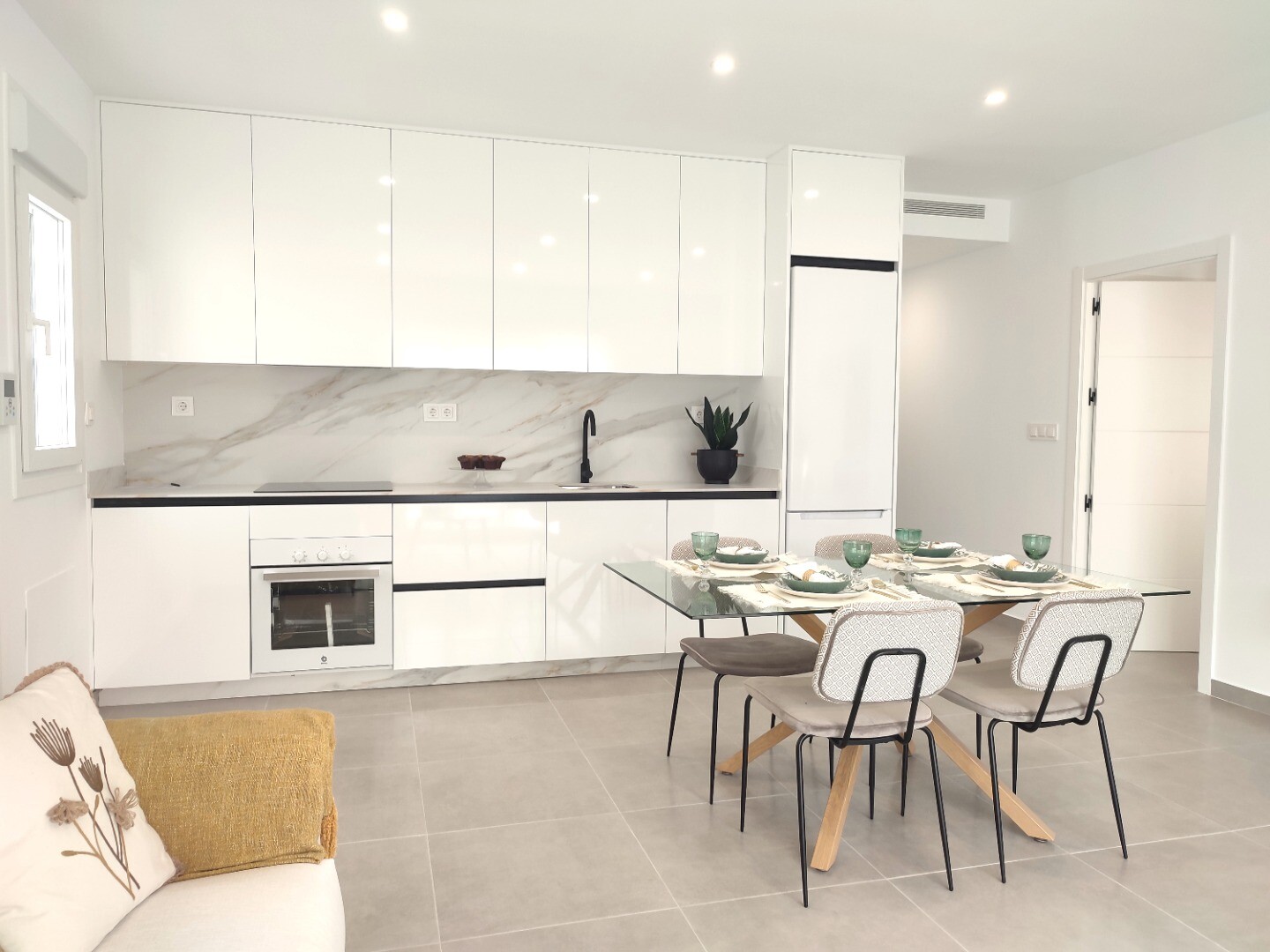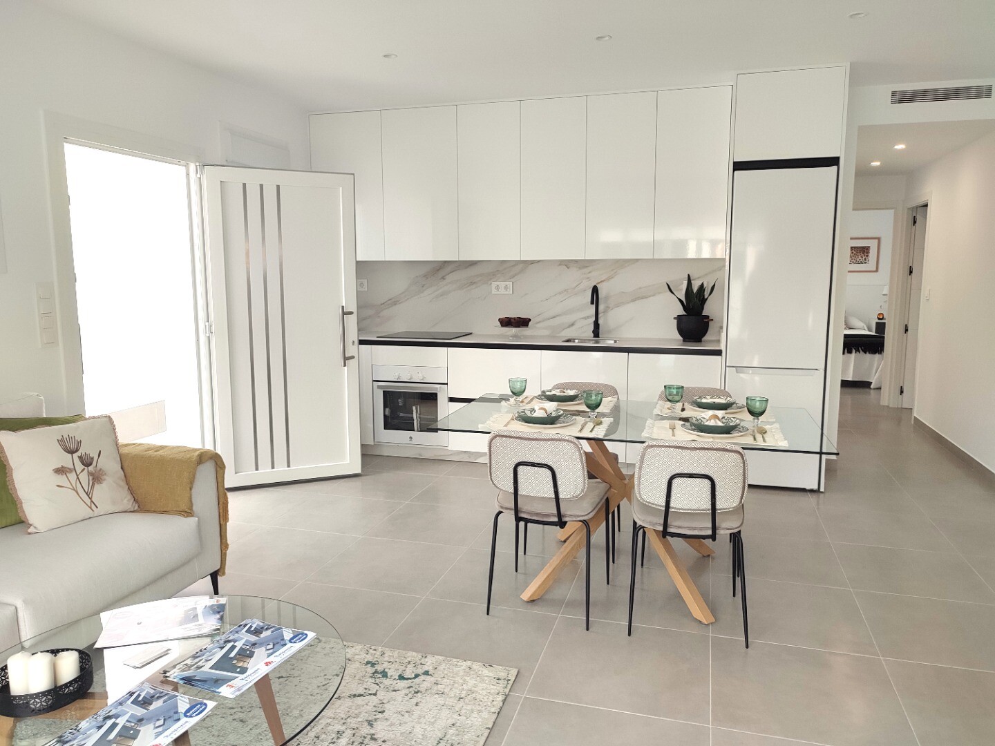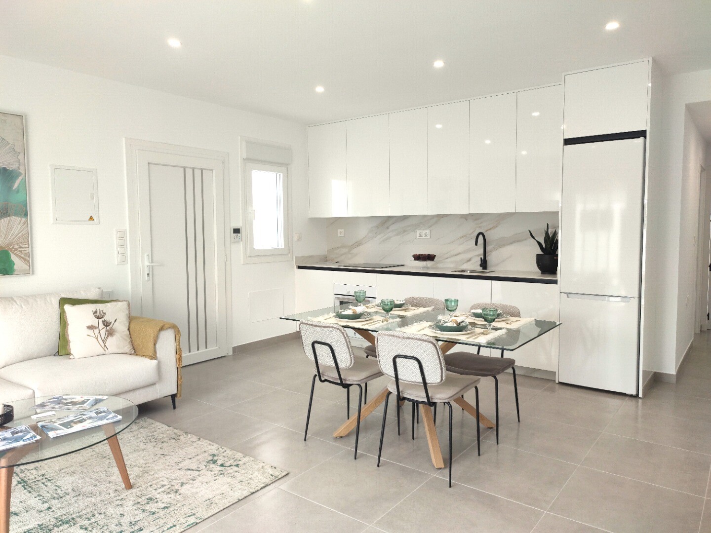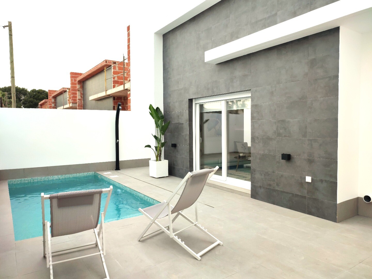 Liten utveckling av enplansvillor i Balsicas. Husen är utrustade med köksmaskiner (keramikhäll, ugn, fläkt, kyl-fryskombination och integrerad diskmaskin), inomhus- och utomhusbelysning (ej dekorationspunkterna), fullt färdiga badrum, sommarkök på takterrassen på 91m2, luftvärme. vattenpanna, förinstallerad A/C via luftkanaler och en privat pool på... 3x5m med spotlights och utomhusdusch. Leverans är planerad till maj 2025. Flygplatserna i Murcia och Alicante kan nås på cirka 20 minuter för Murcia respektive 1 timme för Alicante.