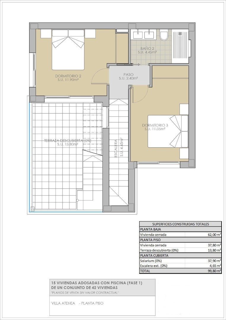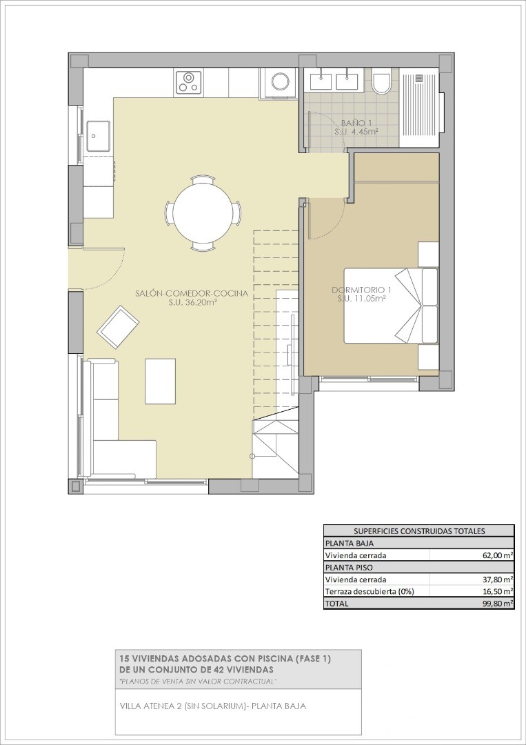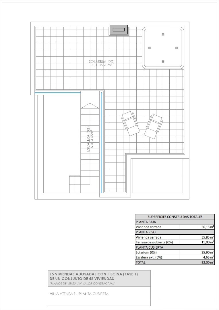 Fastigheterna levereras fullt utrustade med köksapparater, fullt utrustade badrum med golvvärme, elektriska jalusier i sovrummen, fullt färdiga inbyggda garderober med träklädsel, lådor och hängstänger, förinstallation av luftkonditionering via luftkanaler och installerad motor för bildörren. Som tillval kan ett solarium installeras på dessa fastig...heter för 14 900 € exklusive moms, vilket ger dig en vidsträckt utsikt över Torreviejas saltsjöar. I en första fas erbjuds fristående villor och parhusvillor (2 under ett tak). 3 faser byggs med totalt 42 villor. Vistabella Golf bör ses mer som en liten Pueblo med alla bekvämligheter såsom bankomat, stormarknad, olika barer och restauranger, apotek .... med fördelen att det är en helt säker zon med 1 ingång och utgång via en säkerhetsstolpe där varje bils registreringsskylt registreras elektroniskt. Kostnaderna för säkerheten bärs helt av Vistabella Golf själv. Härifrån går det en regelbunden busstrafik varje torsdag mellan Vistabella och La Zenia Shopping Boulevard. Det finns också kollektivtrafik mellan Orihuela och Torrevieja. Från Vistabella Golf kan alla kuststäder i Orihuela Costa nås på cirka 15 minuter med bil. Från Alicantes flygplats kan Vistabella nås via motorvägen AP7 (avgiftsfri) på bara 30 minuter med bil.